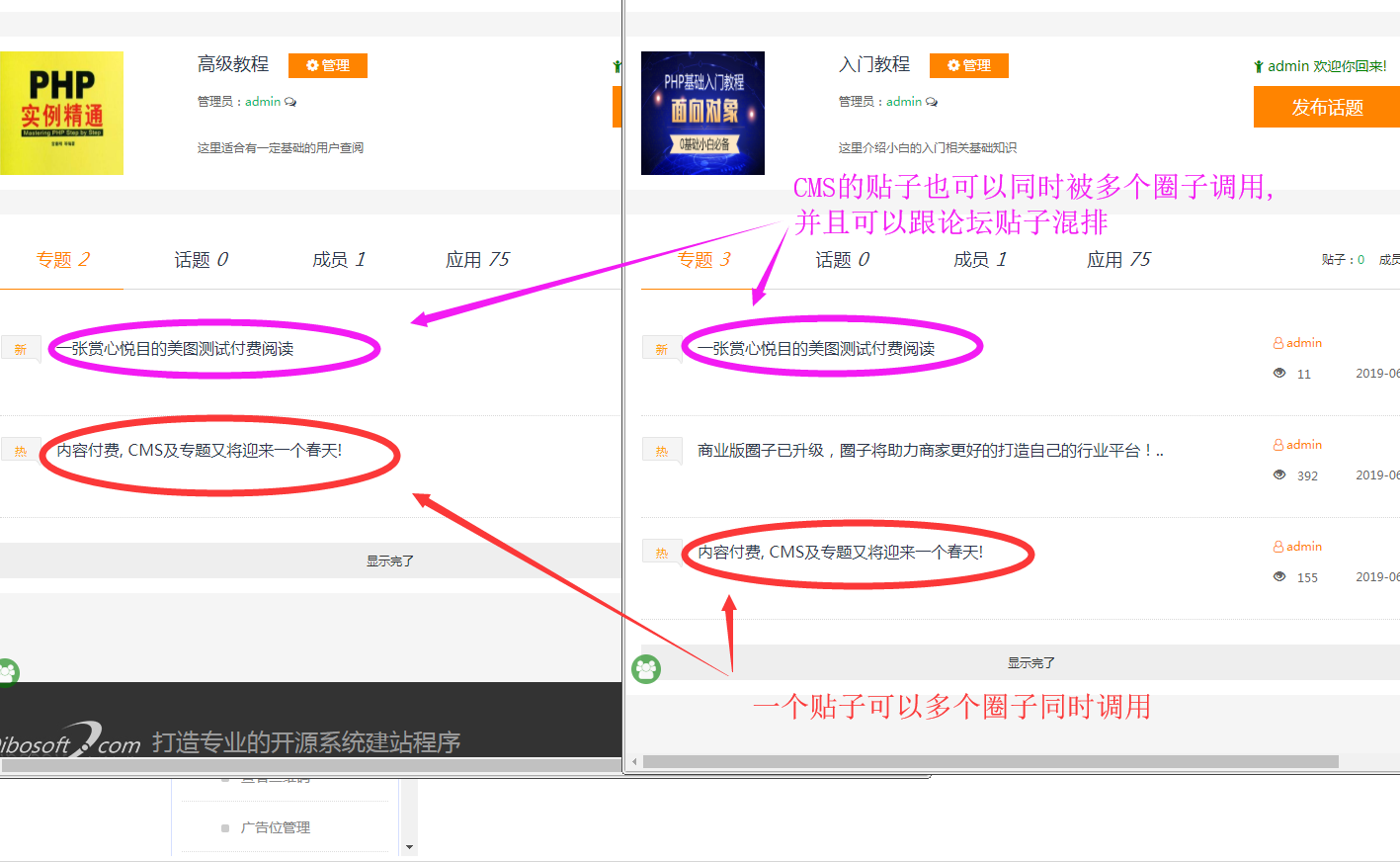 增加专题以后,多个专题都可以调用此CMS付费内容,专题圈子里边的VIP会员也可以免费阅读此付费文章。