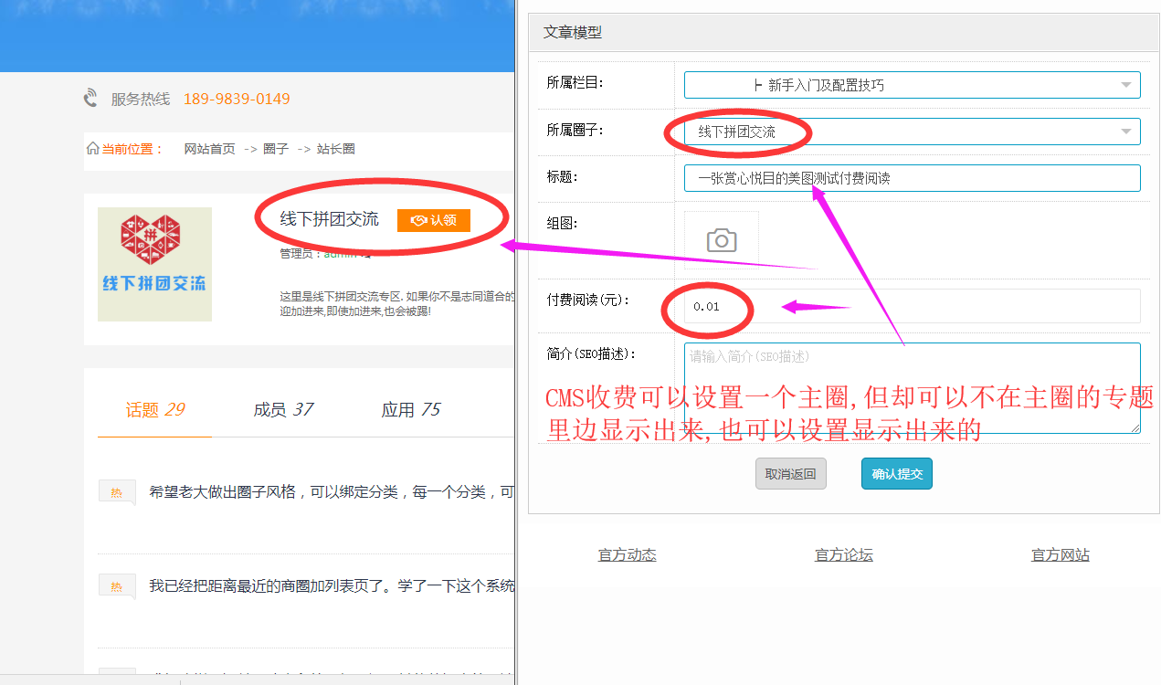 CMS发布一篇付费内容,可以给他指定主圈,主圈的VIP会员查看可以免费。这是之前的功能。
