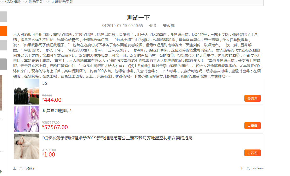 功能很简单,就是发布论坛资讯 新闻资讯的时候 植入商品信息。