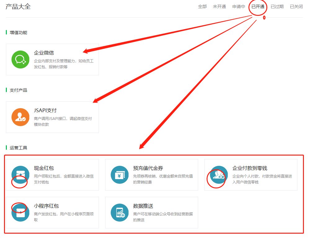 终于开通了微信企业付款到零钱等功能,但红包还是未能进个人的微信钱包,请有经验的指点下。拜托。