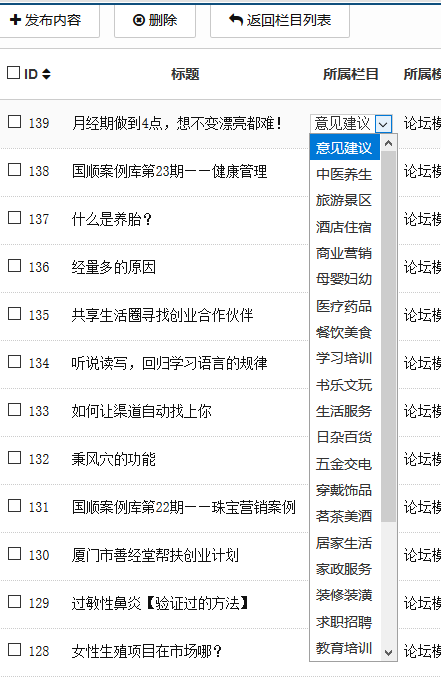 在商城里,因为分类比较细致,栏目会比较多,但论坛里有些主题,竟然会调用了商城的栏目,显示出了很长的栏目列表可选。