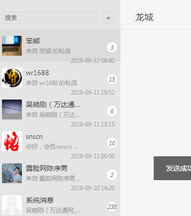 第一次发消息,对方未回复,左边没有消息列表,就是原来的发件箱