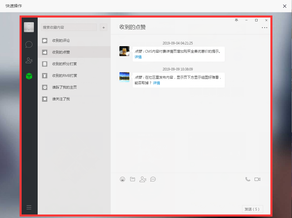 个人觉得PC端的消息窗口把外框去掉,只保留下面图中的红框部分,或许更适用一些,个人感觉。
