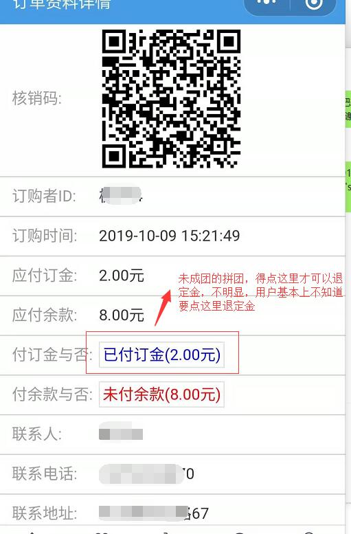 拼团,未成团退订金的显示方式不明显,看下能不能在优化一下,用户很难知道在哪里退订金