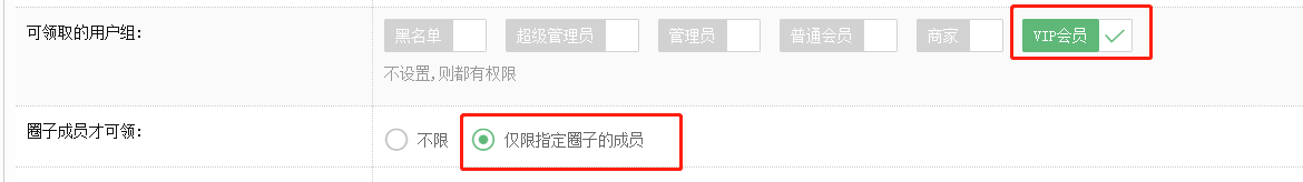 如上图:这样设置是不是代表,VIP用户组、发布代金券的商家成员就可以领取(还是说要成为该商家的vip会员才能领取)?