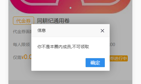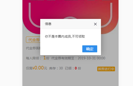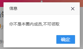 设置:圈子成员才可领、无效,加入的成员也不能领取、始终提示、