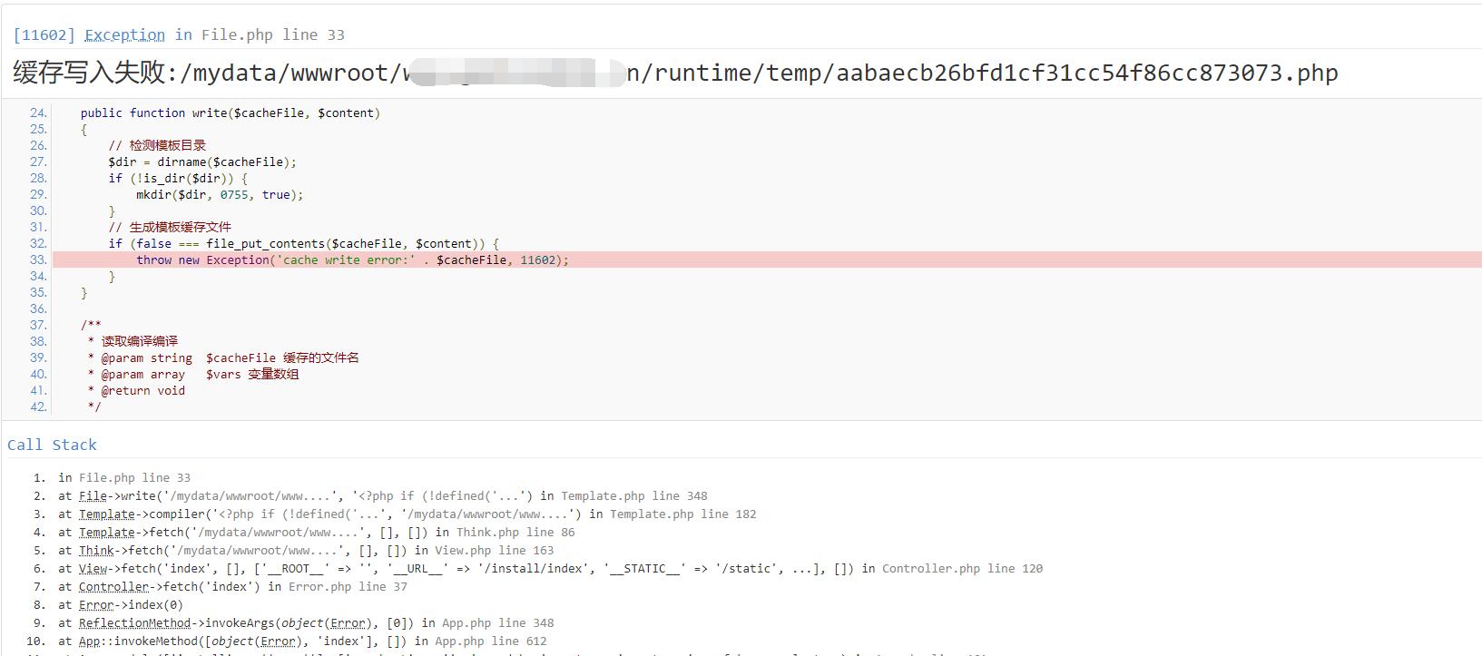 cache write error 就是缓存写信错误 的意思