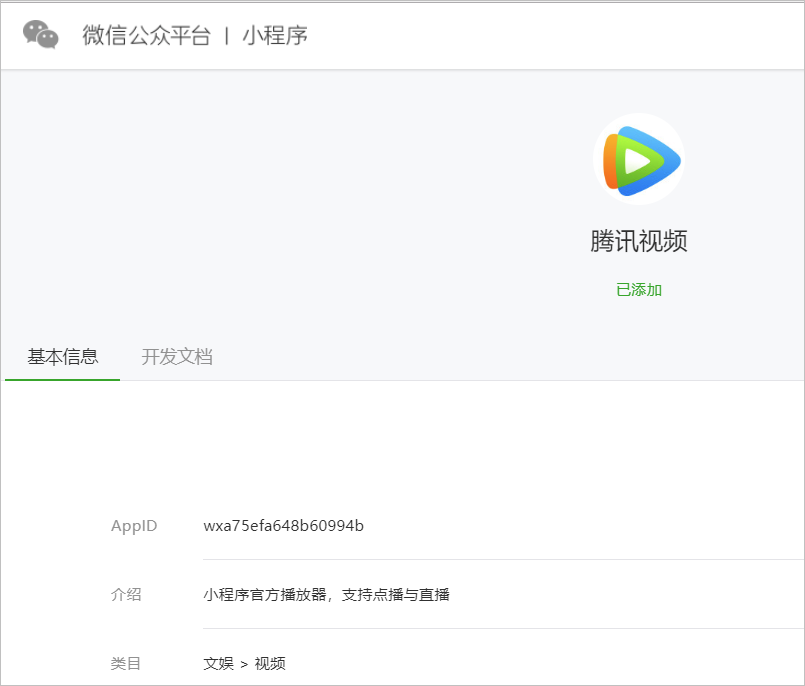 添加视频后,可以获得视频的APPID进行使用,如下是这个插件的信息。