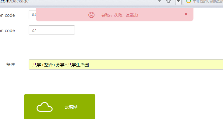 @admin 代码是已经成功提交上去了,后台也看到提交记录了,就是云编译时,会提示“获取SVN失败”。