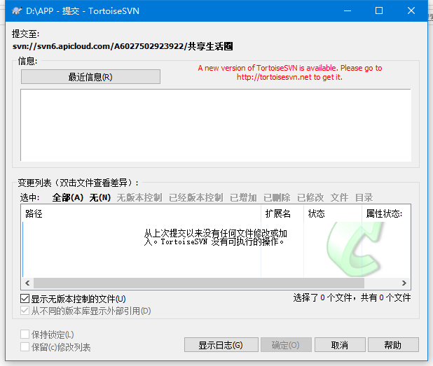 重新建立了一个目录,检出后,把新下载的代码覆盖后,点提交,还是提示无更新文件可提交。可提交界面里全部是空的。但是就是云编译还是会提示获取SVN出错。