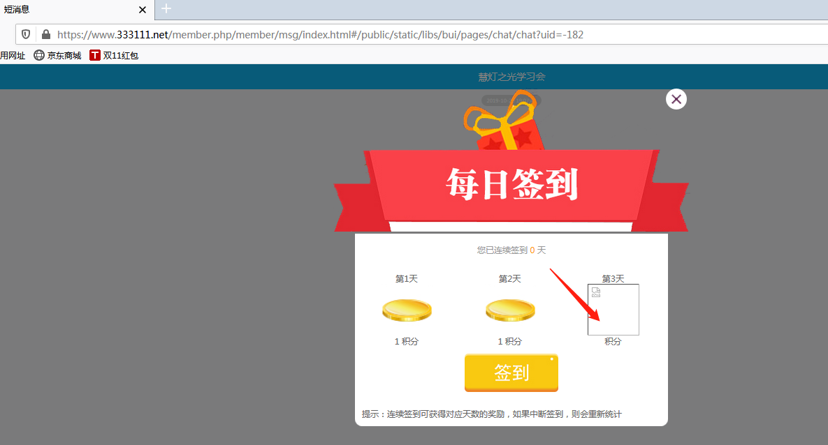 没有设置连续第三天签到奖励引起的.我们优化一下吧