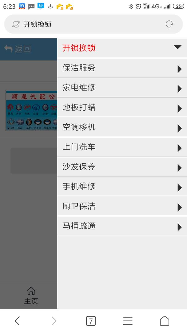 如图,首页里 开锁有锁子,保洁有扫把……