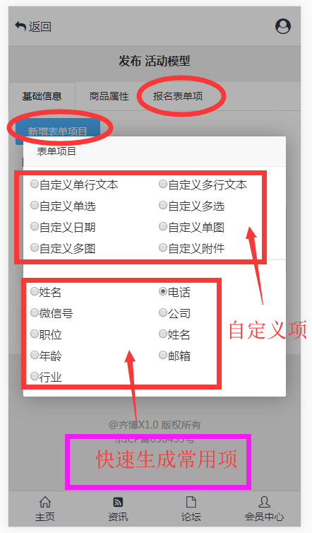 2、活动报名很需要收集用户的信息,不同的活动,需要收集的信息又不一样,所以这个前台根据不同的活动要让活动的发布者可以灵活的创建不同的表单字段,就显得很关键了。