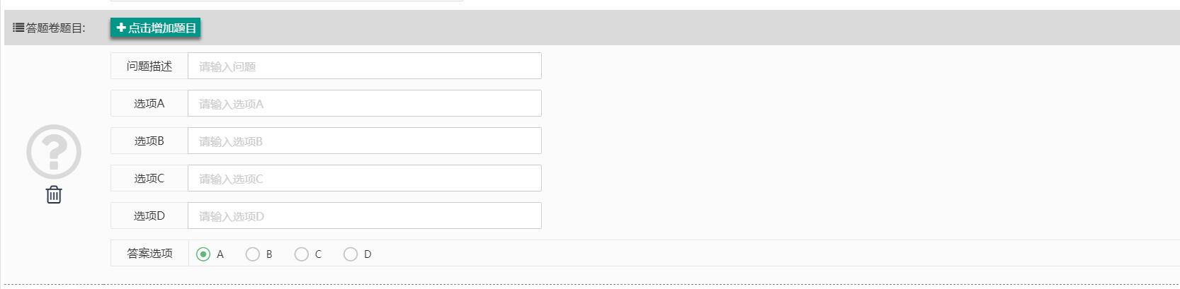 目前,默认是单选.多选的话,需要先录入题库.再从题库选题