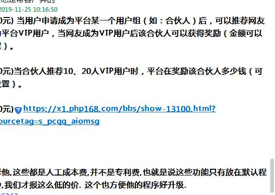 我们并不是以这个为赚钱目的,目的是帮大家快速解决运营过程中遇到的问题,上面说过了,因精力有限,我们不可能同步完善所有人提出的问题,所以只是适当的收取一点人工成本而已。因为订做也仅局限于大众化的小功能,太个性化的功能再多钱也没时间做。