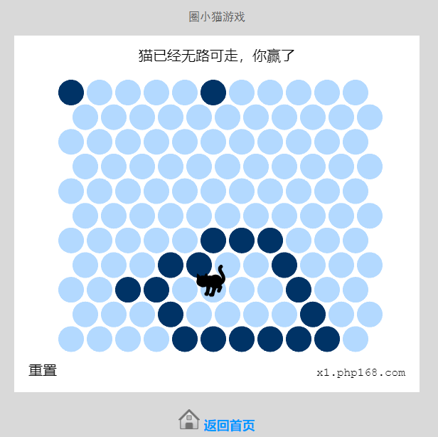 别看这个小游戏很简单,但很耐玩,发给朋友玩了一下,他们说竟然玩了半个多小时还没圈住。