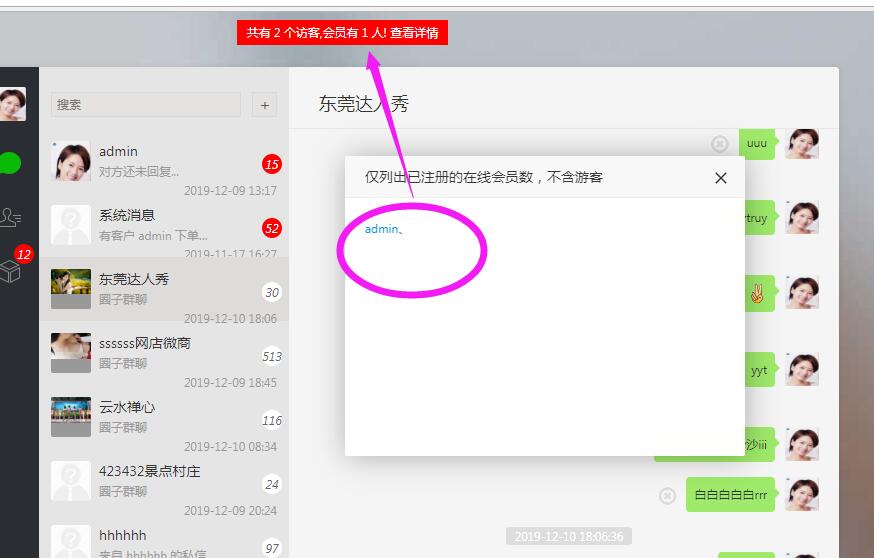 随着直播的深入使用与开发,圈子群聊细节也得到进一步的改进,可以实时统计在线用户情况。