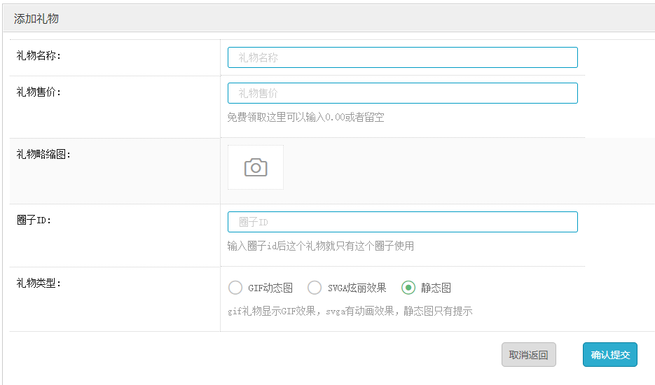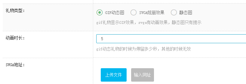 今天对礼物插件进行了完全的重构。支持纯透明PNG格式的图片礼物,支持GIF动画格式的图,支持SVGA格式的动画特效。
