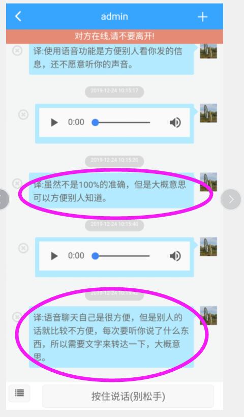 为解决这个问题,现在增加了自动翻译功能,虽然不是100%的准确,但是可以方便别人知道你大概说了什么。