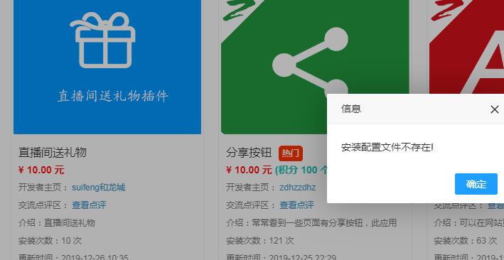 这个直播礼物插件安装的提示,什么造成的?