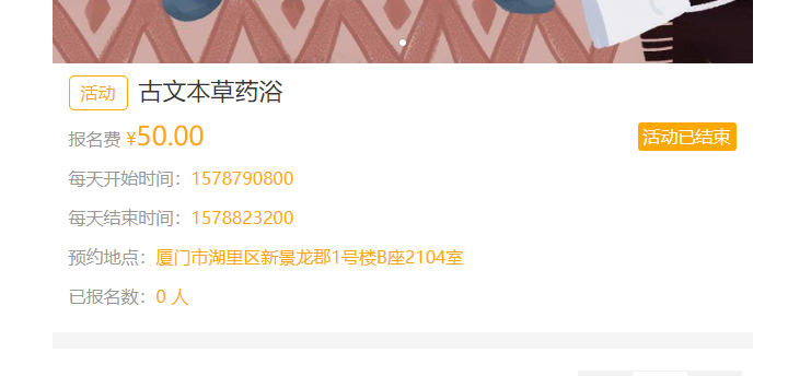 当前活动模块中的开始活动和结束活动时间无法定义,选择好开始和结束时间后,点击提交后,时间自动会变成一串数字,然后就变成活动已结束了。