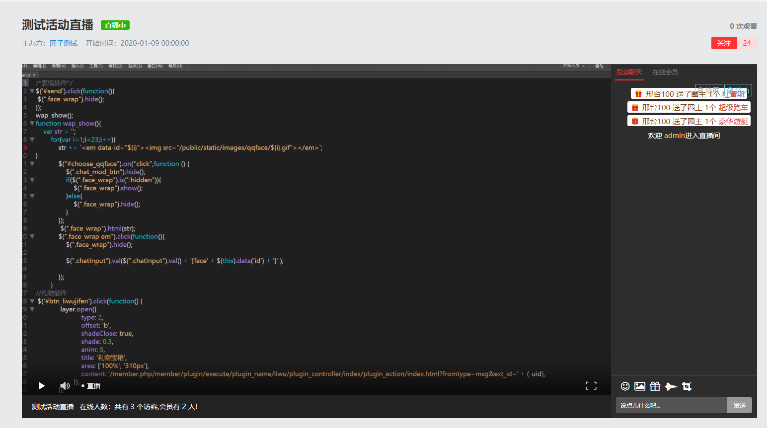 测试直播半成品预览 电脑版完成度60% 主要没有完成的部分是 订阅重构 直播预告的倒计时js没写 直播完结后的回放没有做。