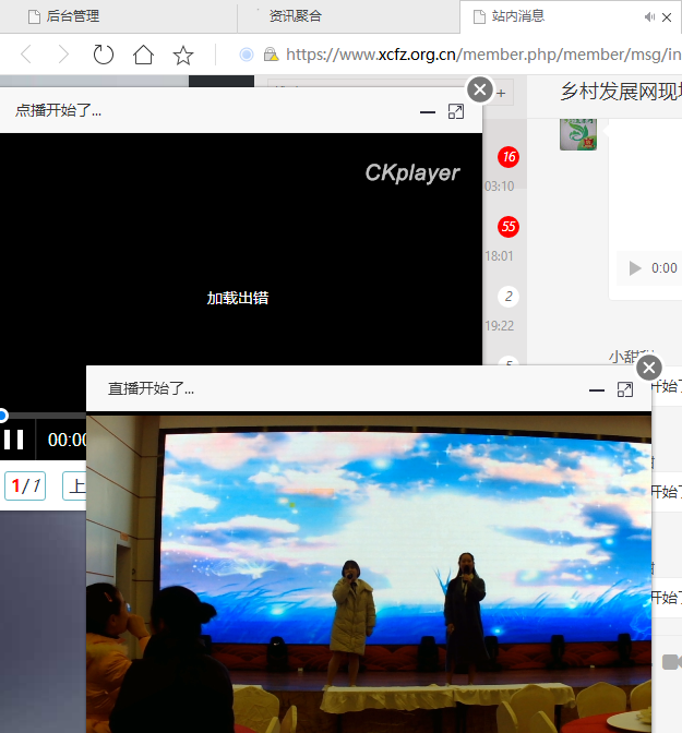 老大,直播问题,微信端,手机端和app都会出现无法加栽视频,偶尔会出现点播的cms音频,电脑端出现两个窗口,一个点播,有空i个直播,原先点播的cms音频直播找不到窗口关掉!