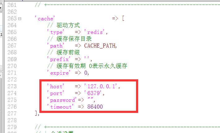 'type' => 'redis', 'host' => '127.0.0.1', 'port' => '6379', 'password'=> "", 'timeout' => 86400,