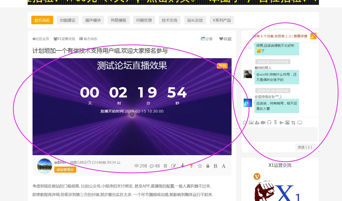 如果有直播或预告的话,将在所有此人发表的主题贴子里突出显示。进一步强化直播的地位。