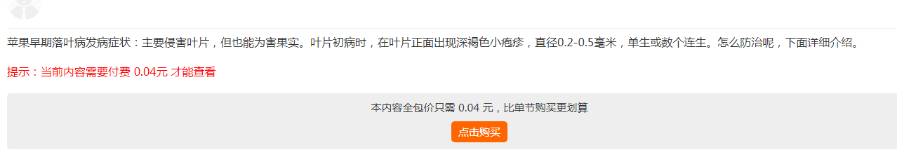 {if $info.price>0} {$info.description} <div style="margin-top:20px;margin-bottom:20px;color:red;">提示:当前内容需要付费 {$info.price}元 才能查看</div> {else /} {$info.content} {/if}