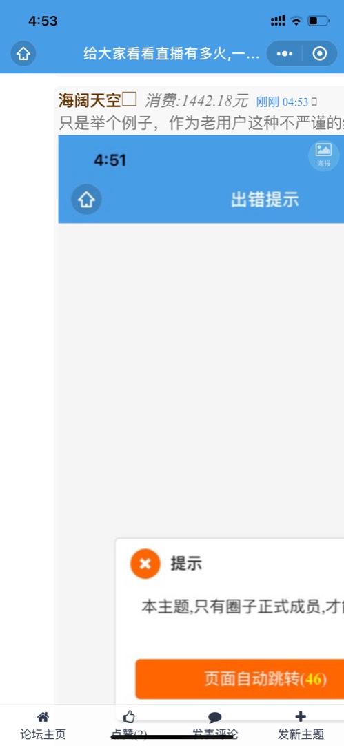 而且大平台的技术你能比的了吗,自己服务器压力直播卡顿操作体验等都被秒杀。x 1都发展三年了,你在官方首页点一个需要加圈子才能看的帖子,里面弹出一个提示框告诉你需要加圈才能看。然后如果你不想加呢,不行,没有你退出的地方,除非你关掉这个页面。我想说的是官方的精力应该放在这些细节,你不完善等谁完善啊?天天更新以至于没法自己开发模版,而你默认的模版不好看体验差却不优化,还天天鼓励站长们实战,这不矛盾吗