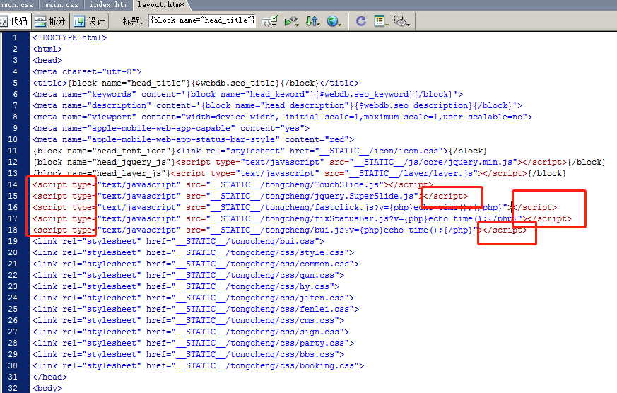 打开index.htm看代码颜色,就觉得不正常,经检查代码在第53行,多打了字符,请去除后,提供给他们升级。