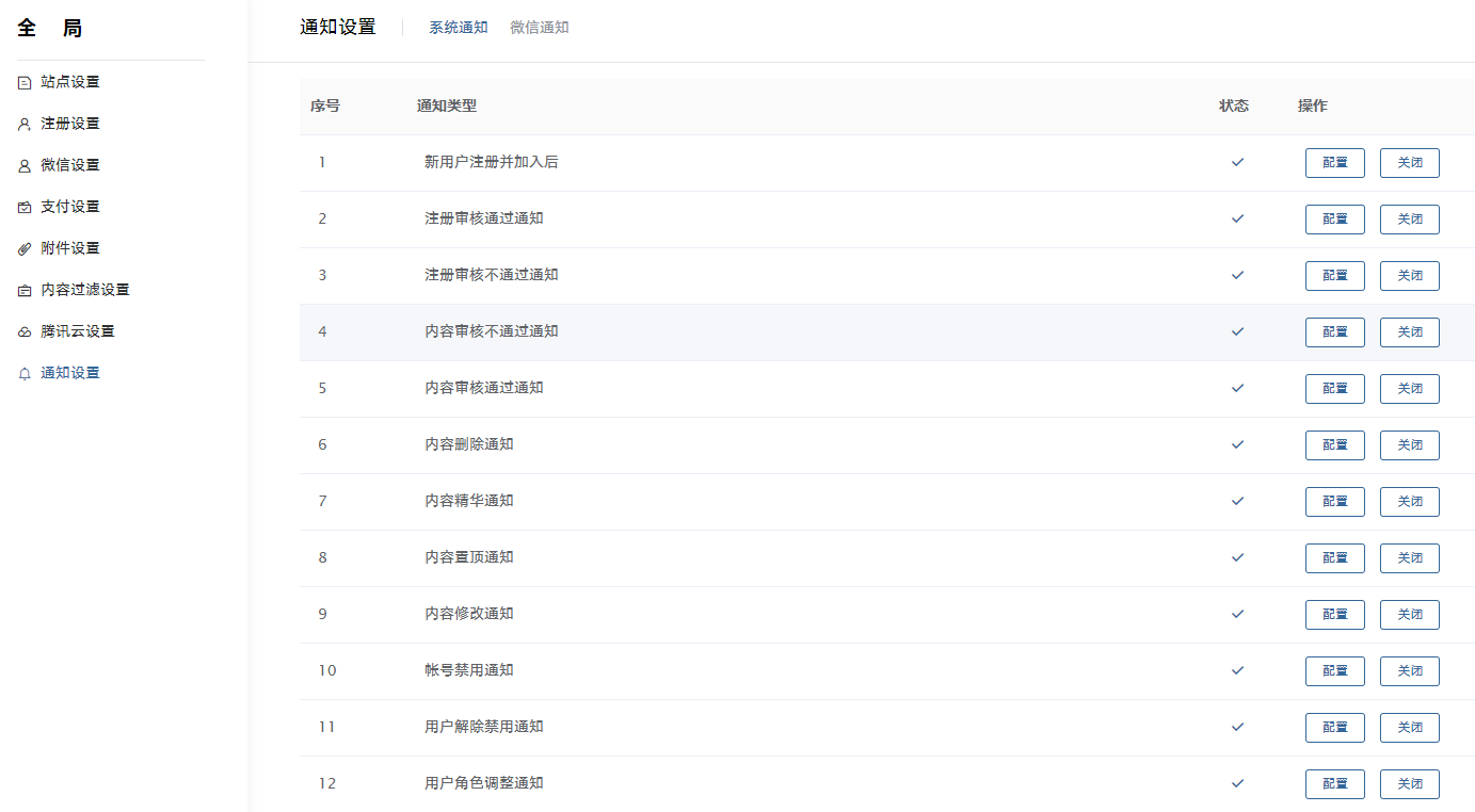 深度整合腾讯云,基础核心确实值得学习,比如信息通知功能,相对完善(短信通知也应该有),admin值得借鉴。毕竟这是用户与站点沟通的桥梁。