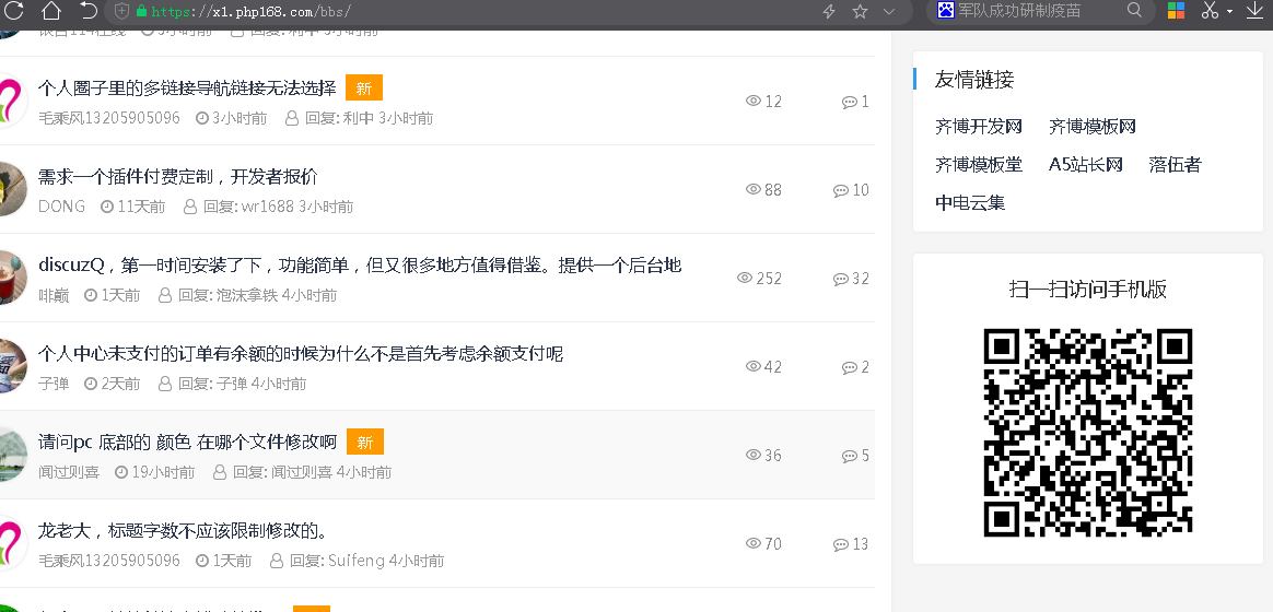 PC端论坛的内容页扫一扫二维码,手机端报错,页面无法开开,需要修补一下