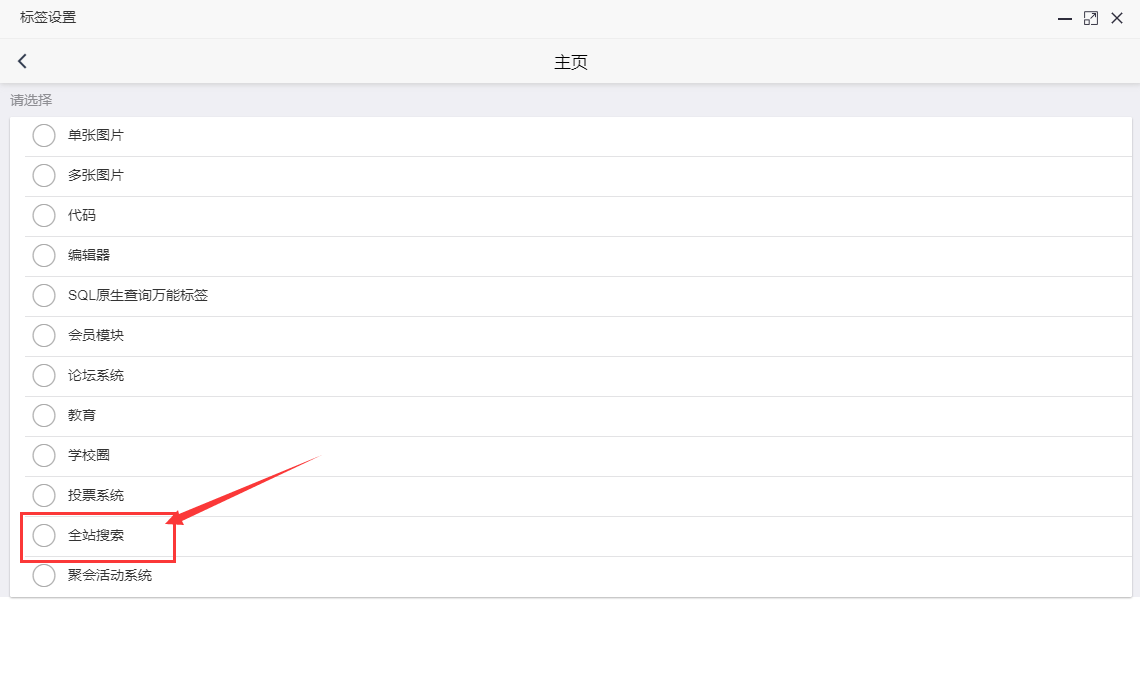 我单独使用全站搜索是可以用的,就是在标签里面调用,就出现这个了