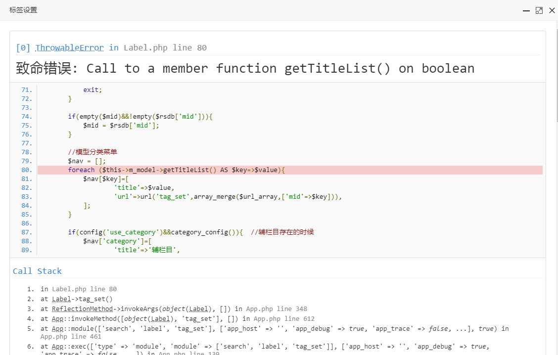 @admin 老大,这是怎么会是,一点标签里面的全站搜索,就出Call to a member function getTitleList