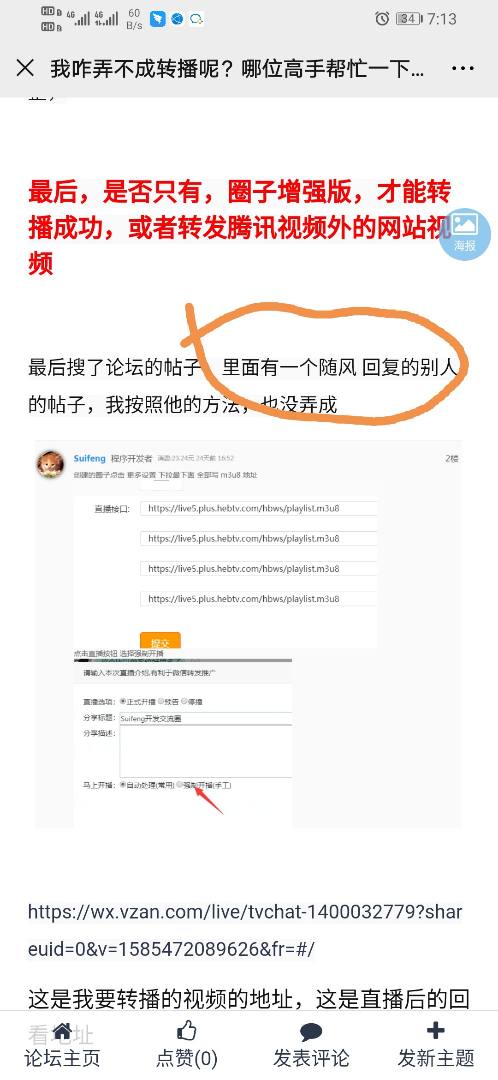最后,是否只有,圈子增强版,才能转播成功,或者转发腾讯视频外的网站视频
