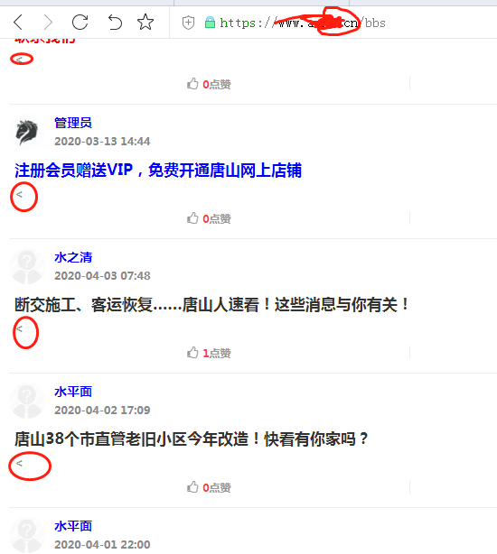 一个奇怪的现象,不知道是不是BUG,使用的微同城模板,只要是第一次打开bbs模块,内容列表处总会出现一个"<"符号,除非是刷新下页面,这个符合才会消失,替代显示就是内容简介,我知道有个朋友使用的也是这个模板,打开他的网站验证也是如此,看截图: