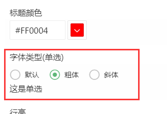['radio','test_type','字体类型(单选)','这是单选',['默认','粗体','斜体'],1],