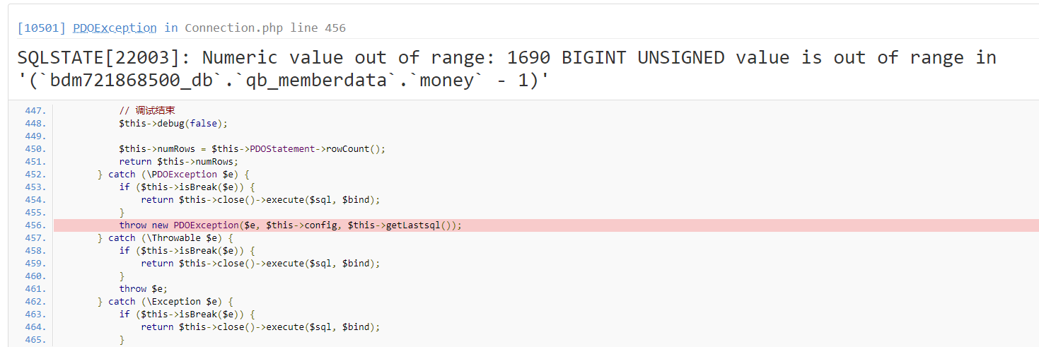 谢谢随风大哥的解释,他说这个错误是因为你的积分是负数了,导致的数据库错误。
