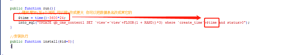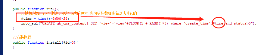 我增加了cms文章点击量的代码,into_sql("UPDATE qb_cms_content1 SET `view`=`view`+FLOOR(1 + RAND()*3)");