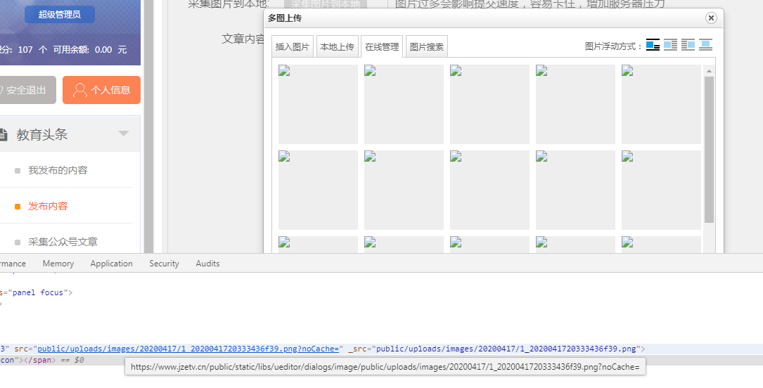 研究了好久一项一项排除,终于知道问啥多图上传,在线管理图片不显示了