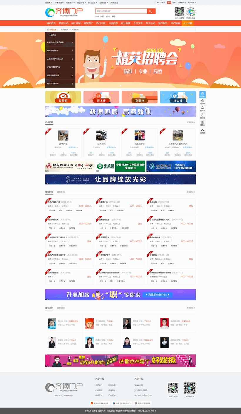 《齐博门户》人才招聘频道 演示地址 https://www.qibomh.com/hr/