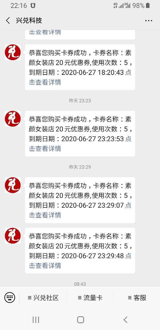这是我收到的通知,但是我没买卡券,是客户领取了,我收到了这样的通知!