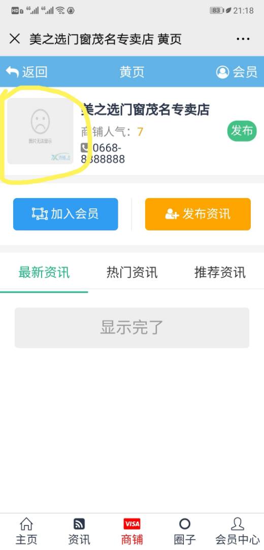 手机浏览黄页某个商铺,点击图标切换至资讯、动态、话题时头像无法显示
