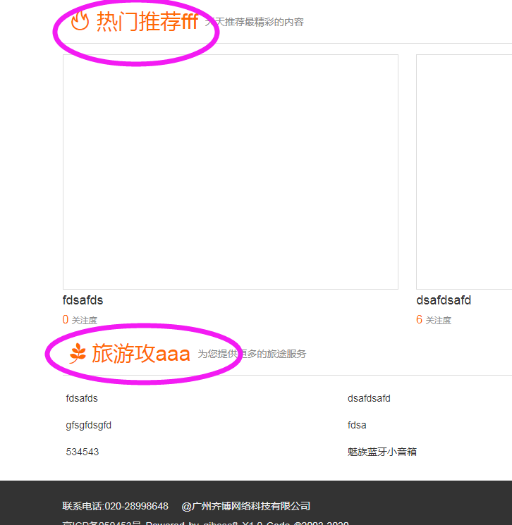 默认首页2个文章标签分别设置每一个的文章主标题和副标题,但是最终是同样是一个的