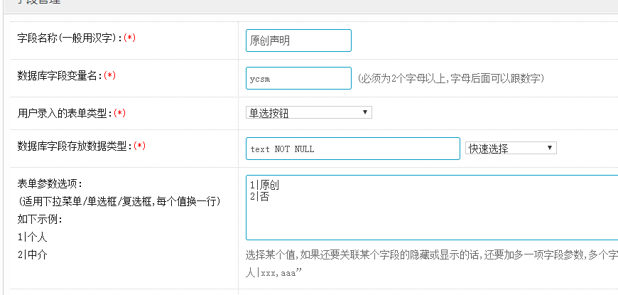 @swstt 谢谢,不过这种方式会不会说,引用的时候只出现 是 和 否 而不是原创两字呢? 选否的时候,前端估计也会出现 否 字。 引用的时候估计要写代码判断