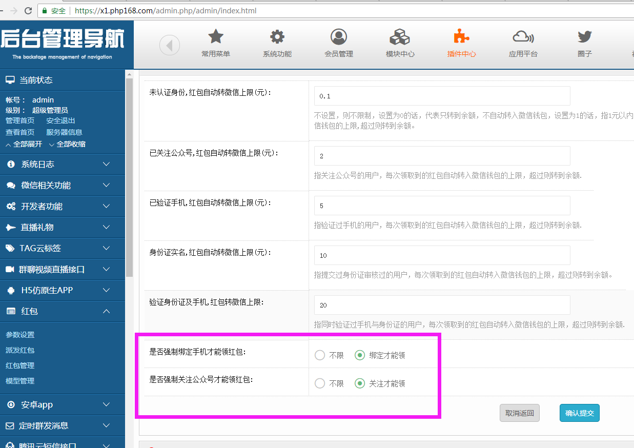 红包细节进一步优化,增加必须绑定手机或关注公众号才能领取红包的开关