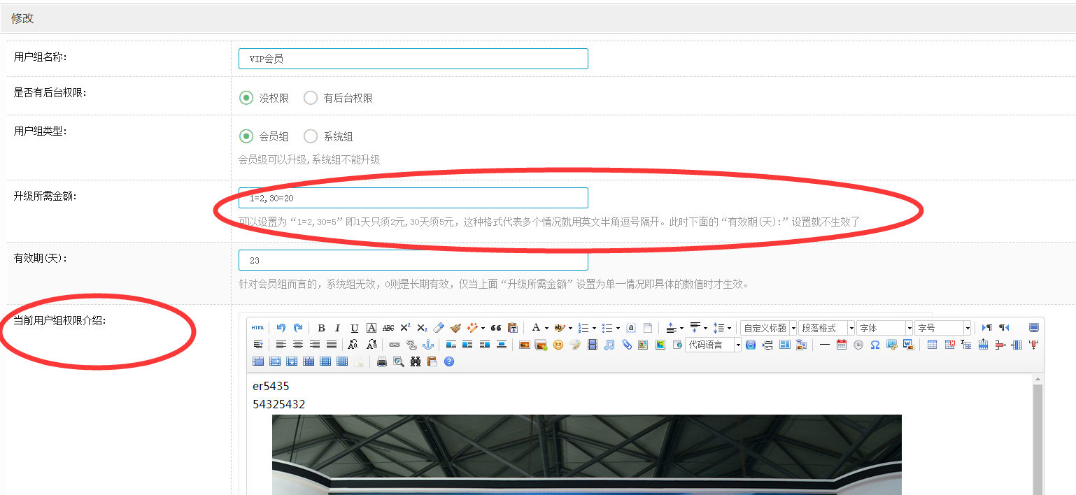 每个用户组可以单独设置升级的天数套餐,可以随意设置1天或1周或1个月或1年分别多少钱都可以任意定义。