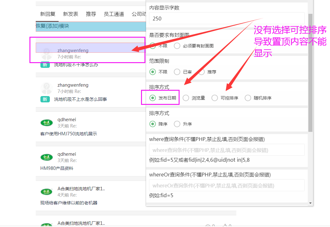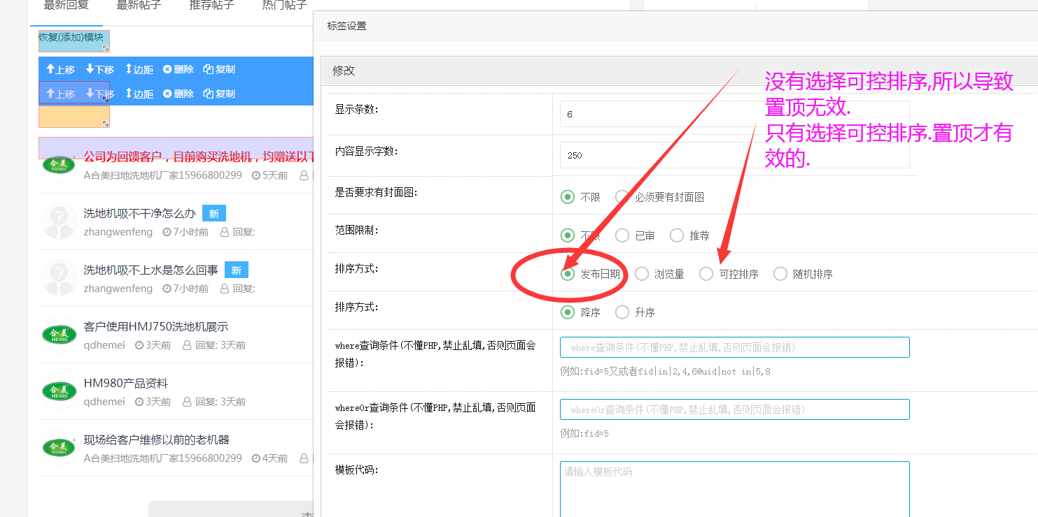 凡是置顶无效的,请先检查标签设置, 是否选择可控排序. 不然的话,置顶会无效.